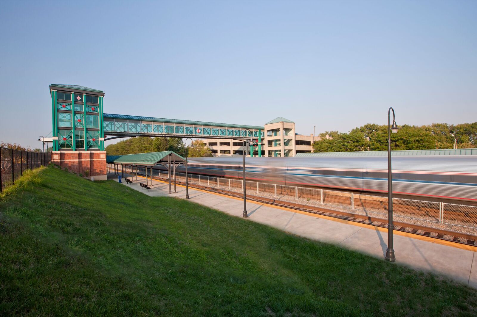 Costello Construction was the general contractor for this three level structure built of exposed steel and cast in place concrete. Included in the structure are a stair tower, hydraulic elevator, a slab on grade platform/canopy and a pedestrian bridge that was built over active railroad tracks. Notable challenges in this project include extensive storm utility installation and Verizon phone line relocation, both self performed by Costello Construction.